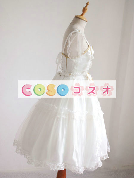 ロリータ服 ワンピース エクリュホワイト ストッキング シフォン ノースリーブ  ―Lolita0285