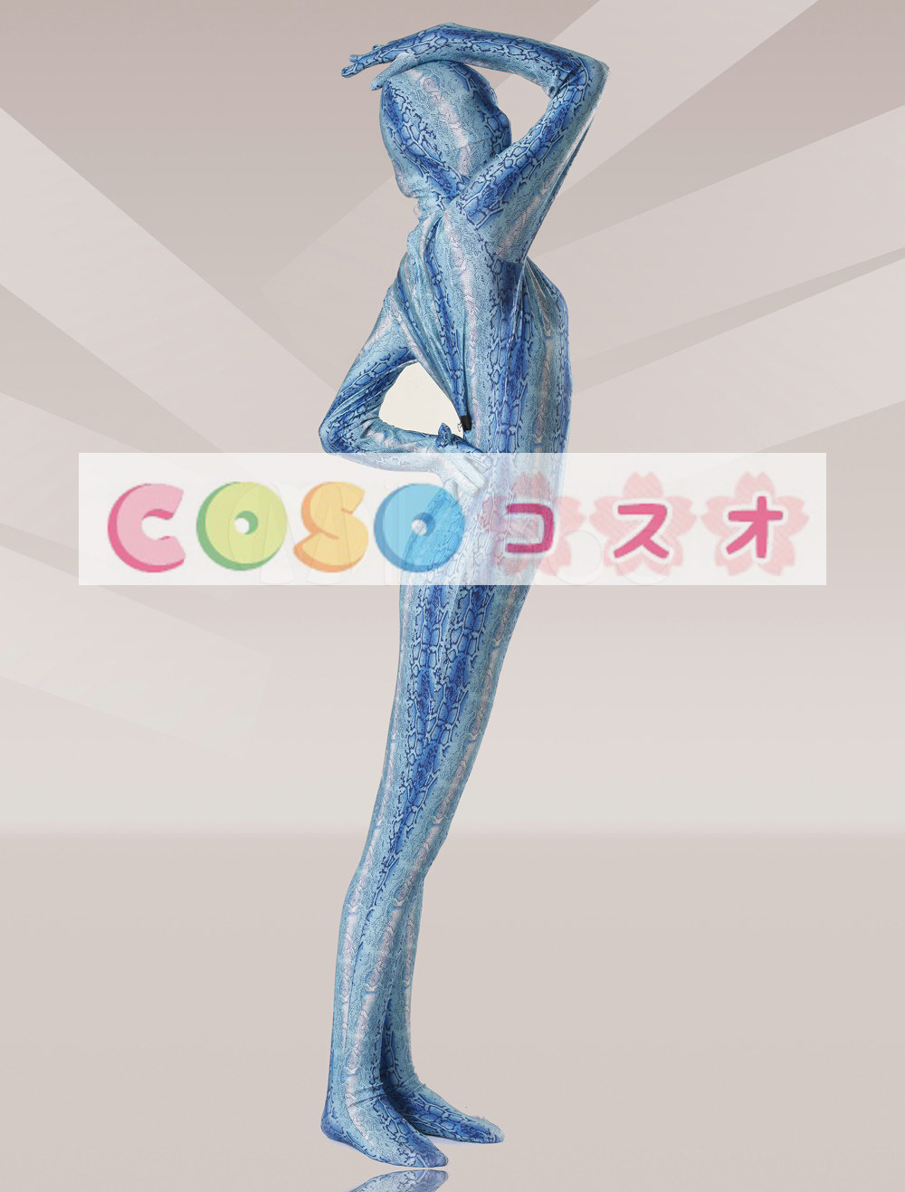 全身タイツ,ヘビ柄 ブルー 開口部のない全身タイツ 大人用 コスチューム ユニセックス―taitsu-tights0287