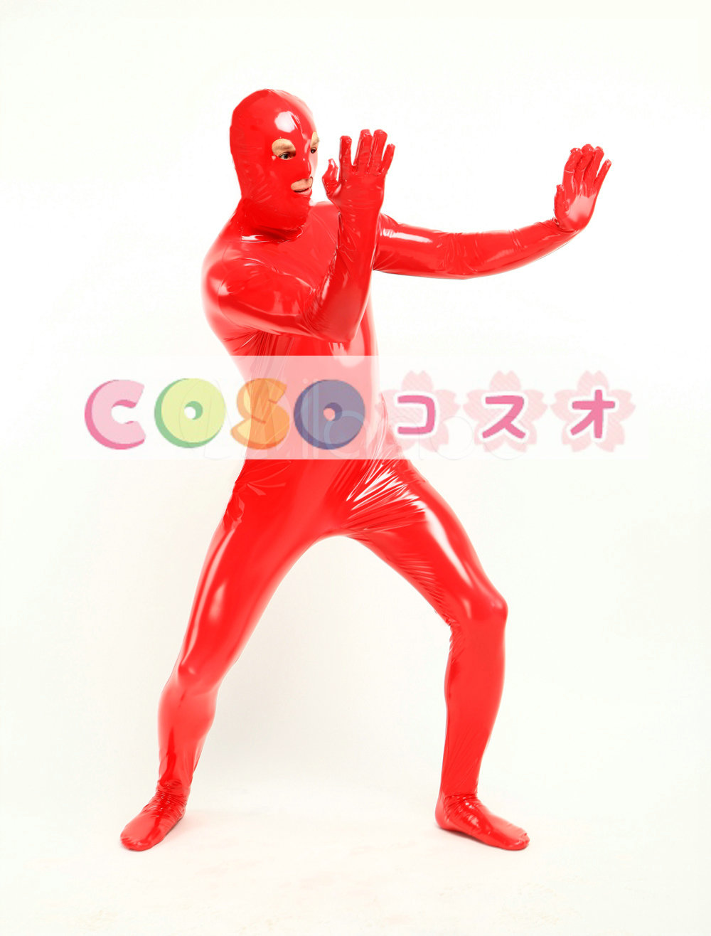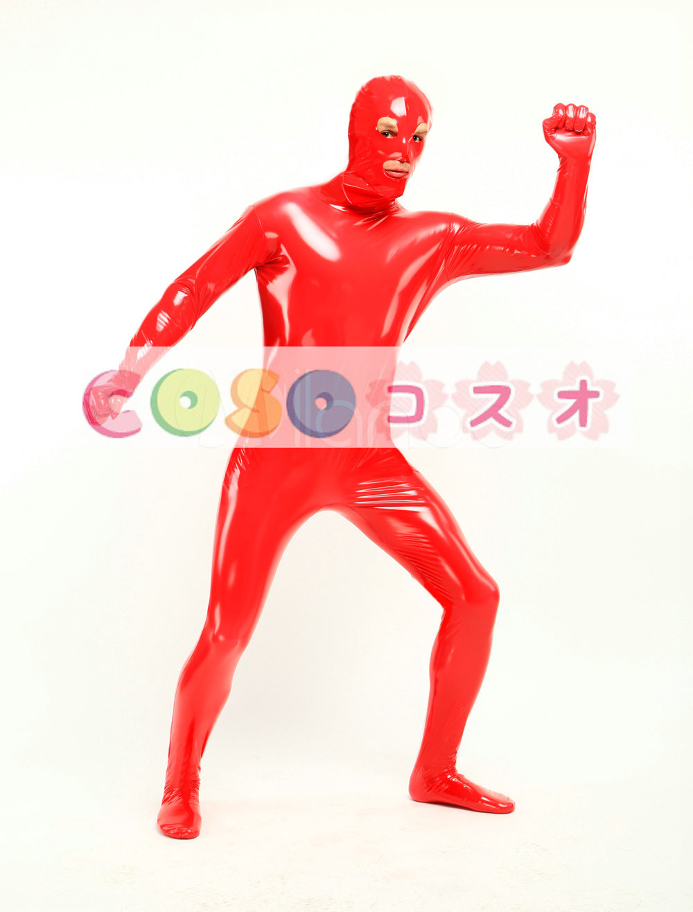 全身タイツ,PVC レッド 目と口が開いている ユニセックス 大人用 コスチューム―taitsu-tights0893