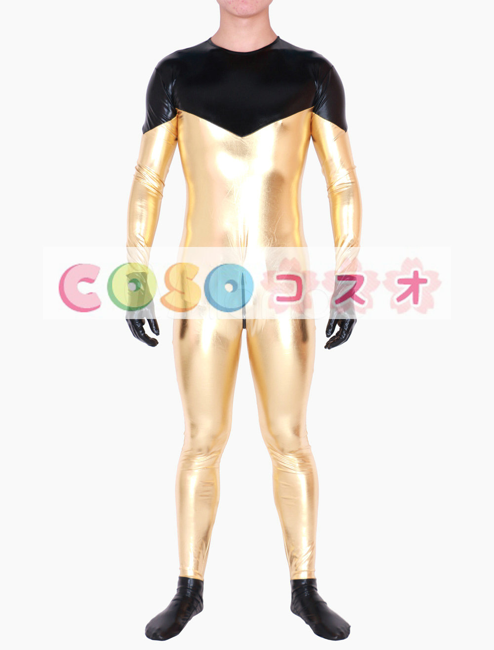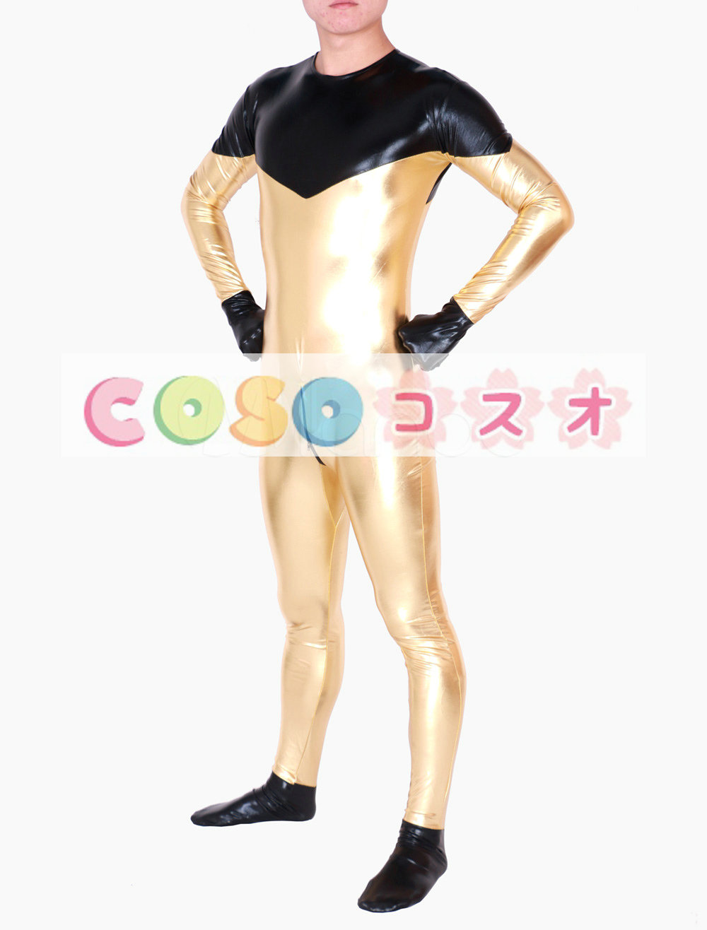 全身タイツ ゴールド×ブラック 男女兼用 大人用 キャットスーツ―taitsu-tights1171