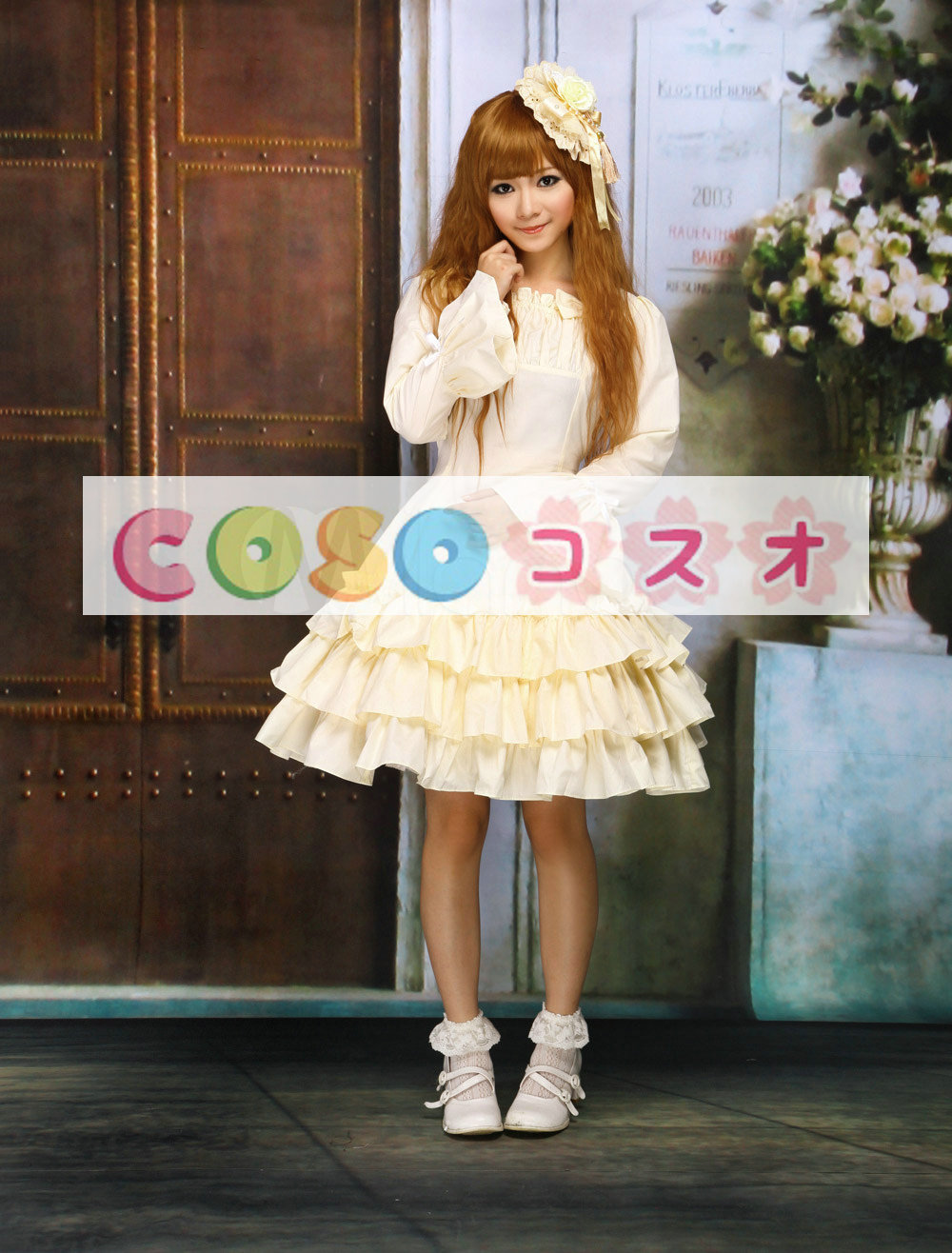 ロリータワンピース,ベージュ スクエアネック ティアド ロングスリーブ クラシック&トラディション  ―Lolita0317