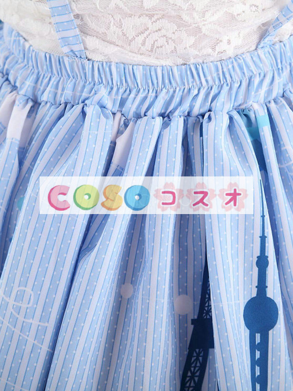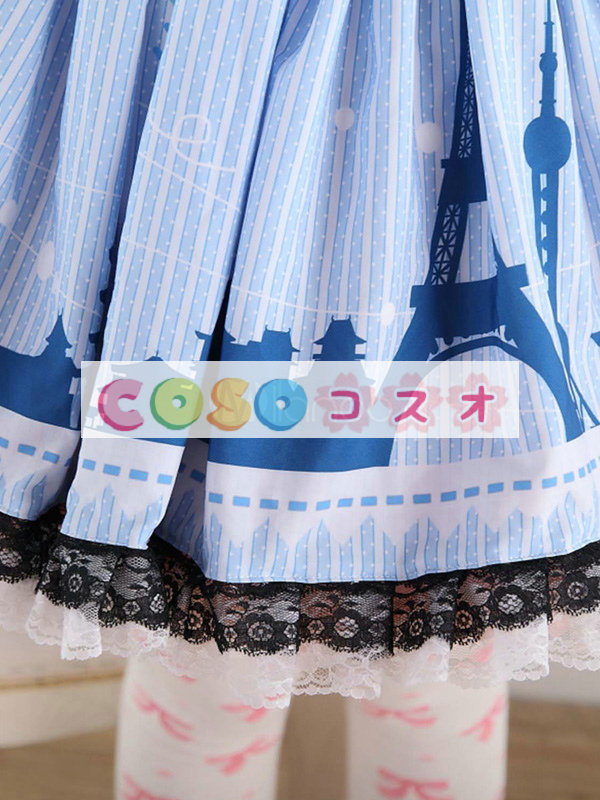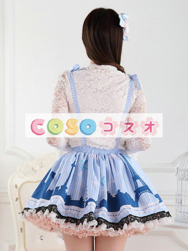 ロリータ服 スカート ブルー 新作 スィート プリント レース  ―Lolita0361