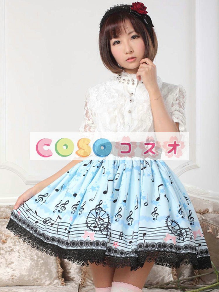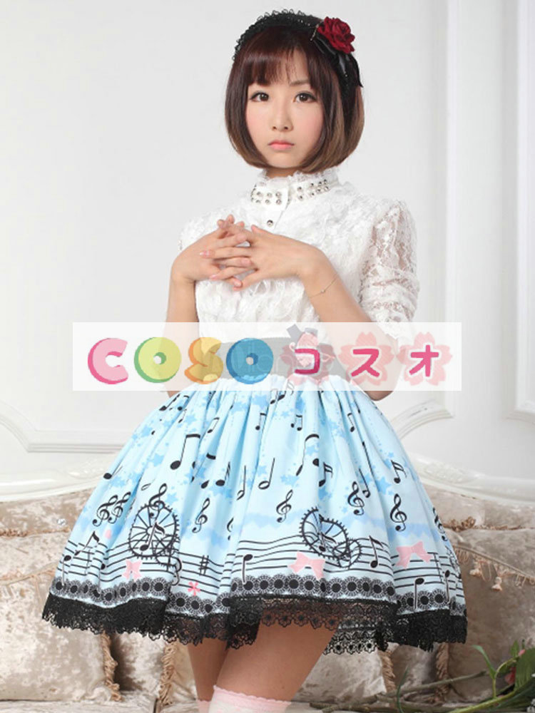 ロリータ服 スカート ブルー スィート プリント レース  ―Lolita0425