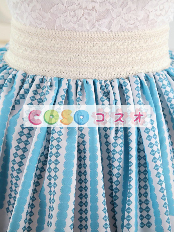 ロリータ服 スカート ブルー スィート 可愛い 新作 プリント レース  ―Lolita0551