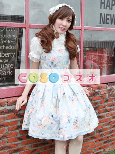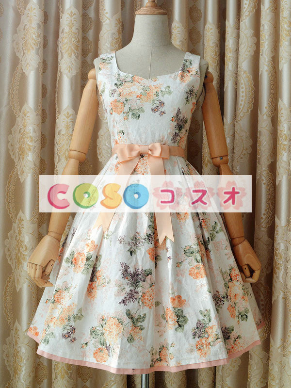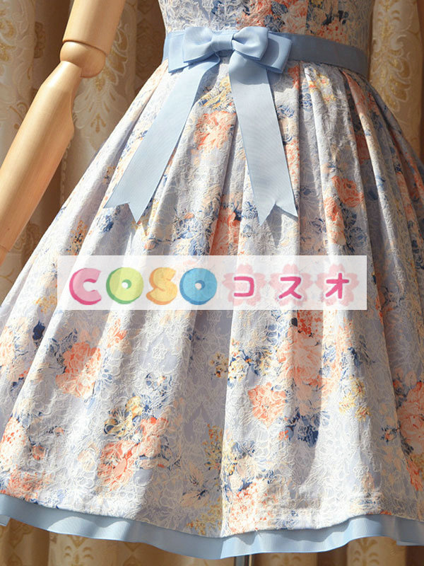 ロリータ服 ワンピース チュニック プリント柄 ジャガード織 可愛い ノースリーブ パーティー  ―Lolita0564