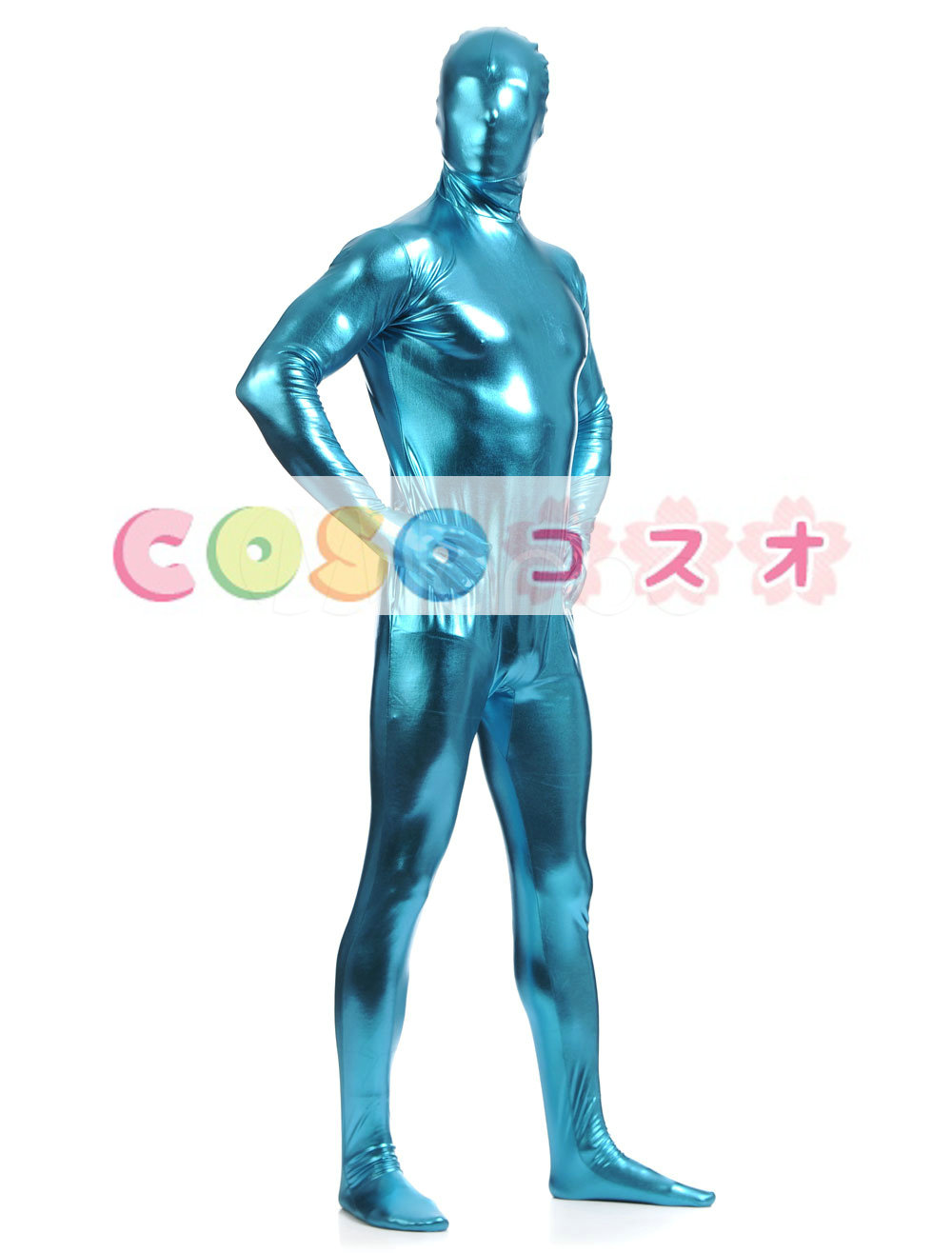 メタリック全身タイツ ジャンプスーツ ブルー 大人用 ―taitsu-tights1469